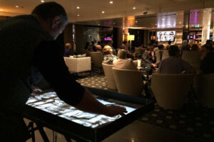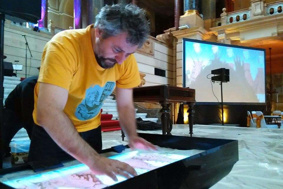A világon egyedülálló, saját fejlesztésű digitális homokanimáció produkciónk sokoldalú és kreatív műsorszám, mellyel garantáltan lebilincseli közönségét és emlékezetessé teszi a rendezvényét. Zenére, kivetítőn élőben készül a kép, melyhez a homok szórásán túl látványos effektek, képi, filmes elemek is társulnak.